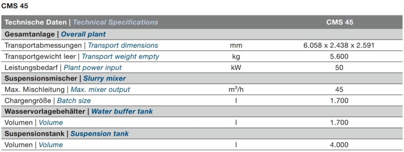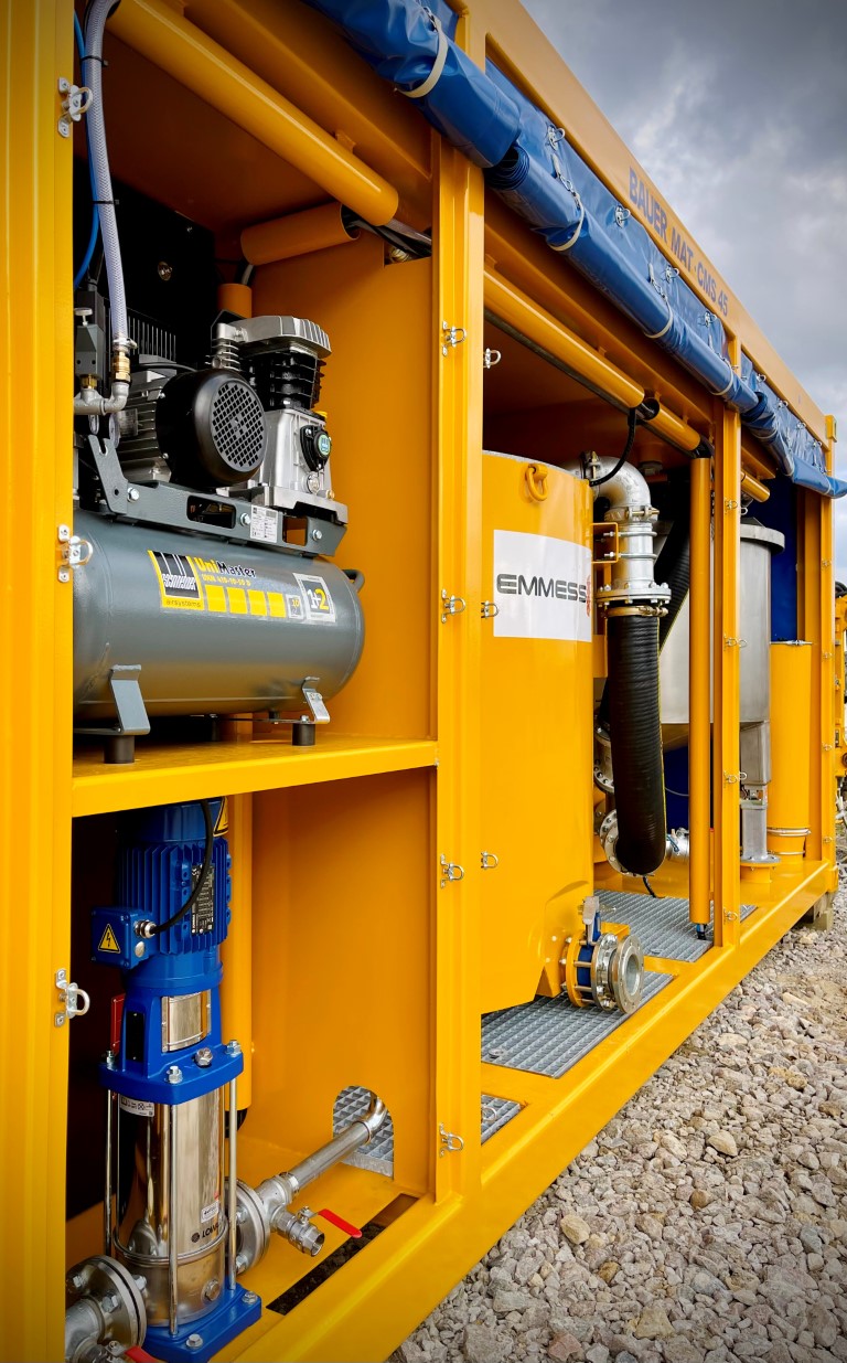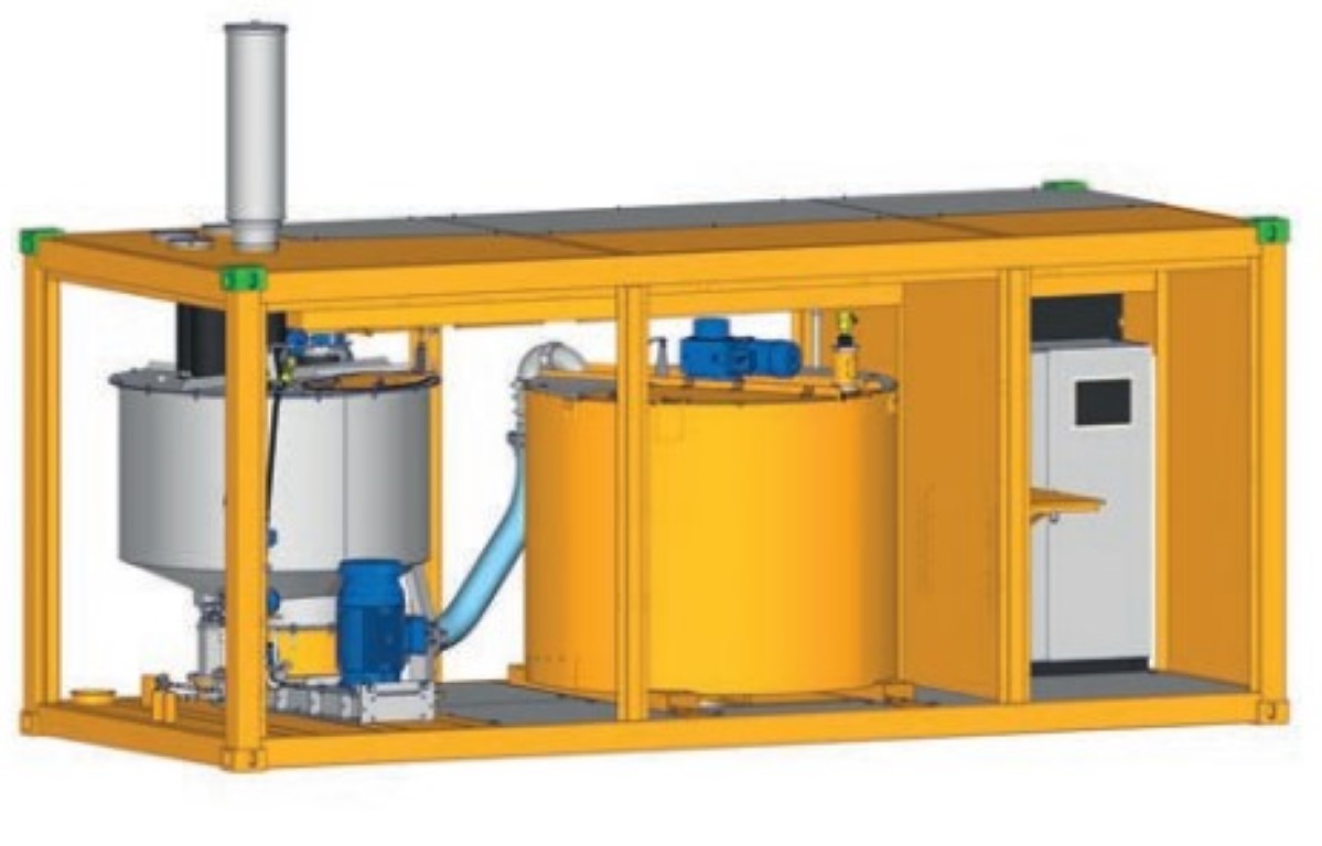 The BAUER CMS 45 Containerised Mixing System is an ultra-compact 20ft containerized unit designed for rapid setup, offering both soft and hard shell options for noise reduction.